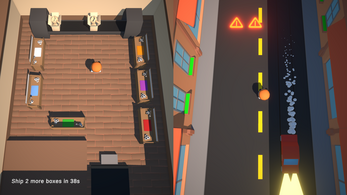 Work with (or try and sabotage) your teammate to sell faulty items, labelled as perfectly safe. One person grabs damaged items off of a conveyor and sells them, whilst the other one has to survive in a world full of broken items.